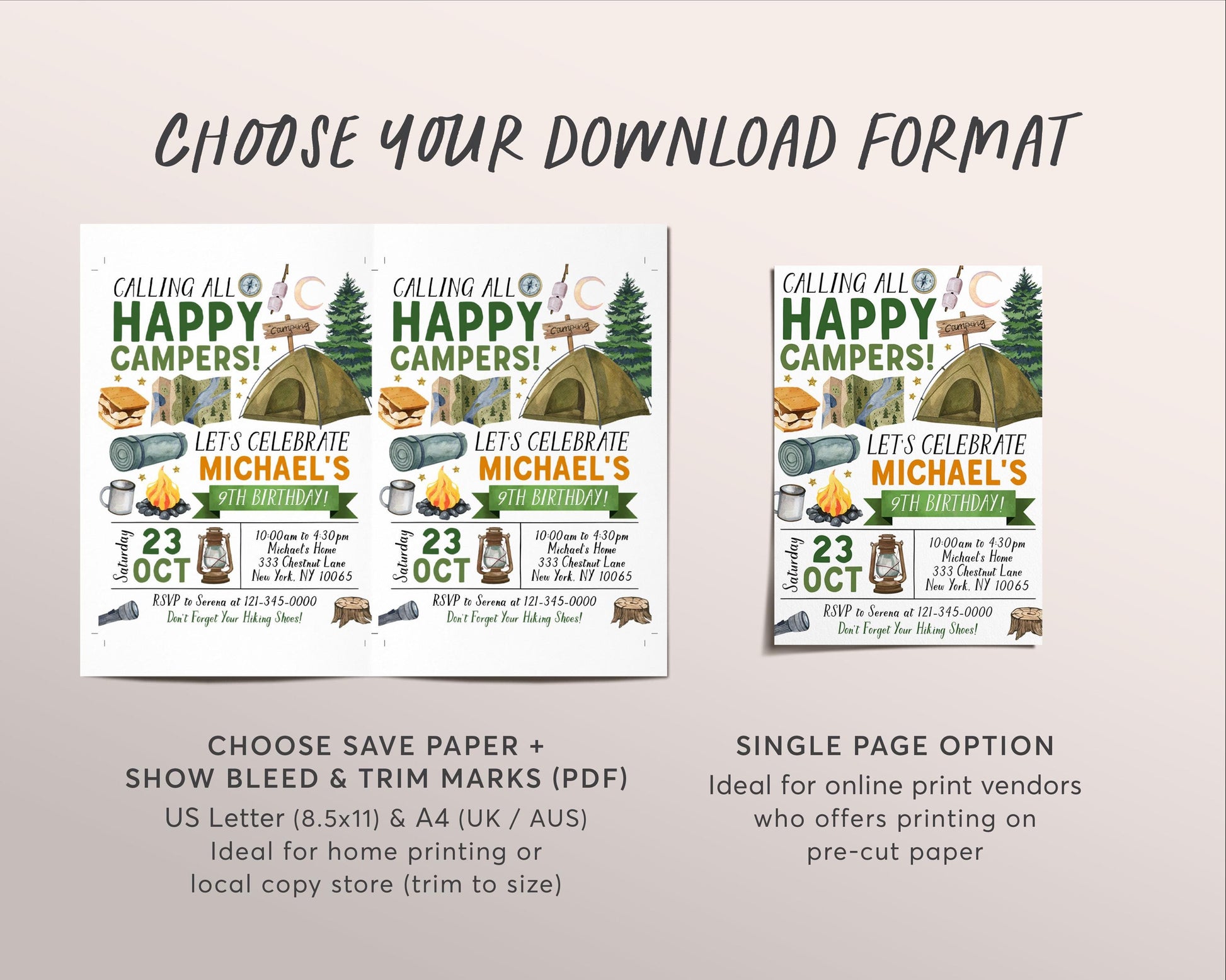 Camping Birthday Invitation Editable Template, Outdoor Camp Out Party Invite, Unisex Camp Checklist, Kids Rustic Tent Sleepover Hiking Evite
