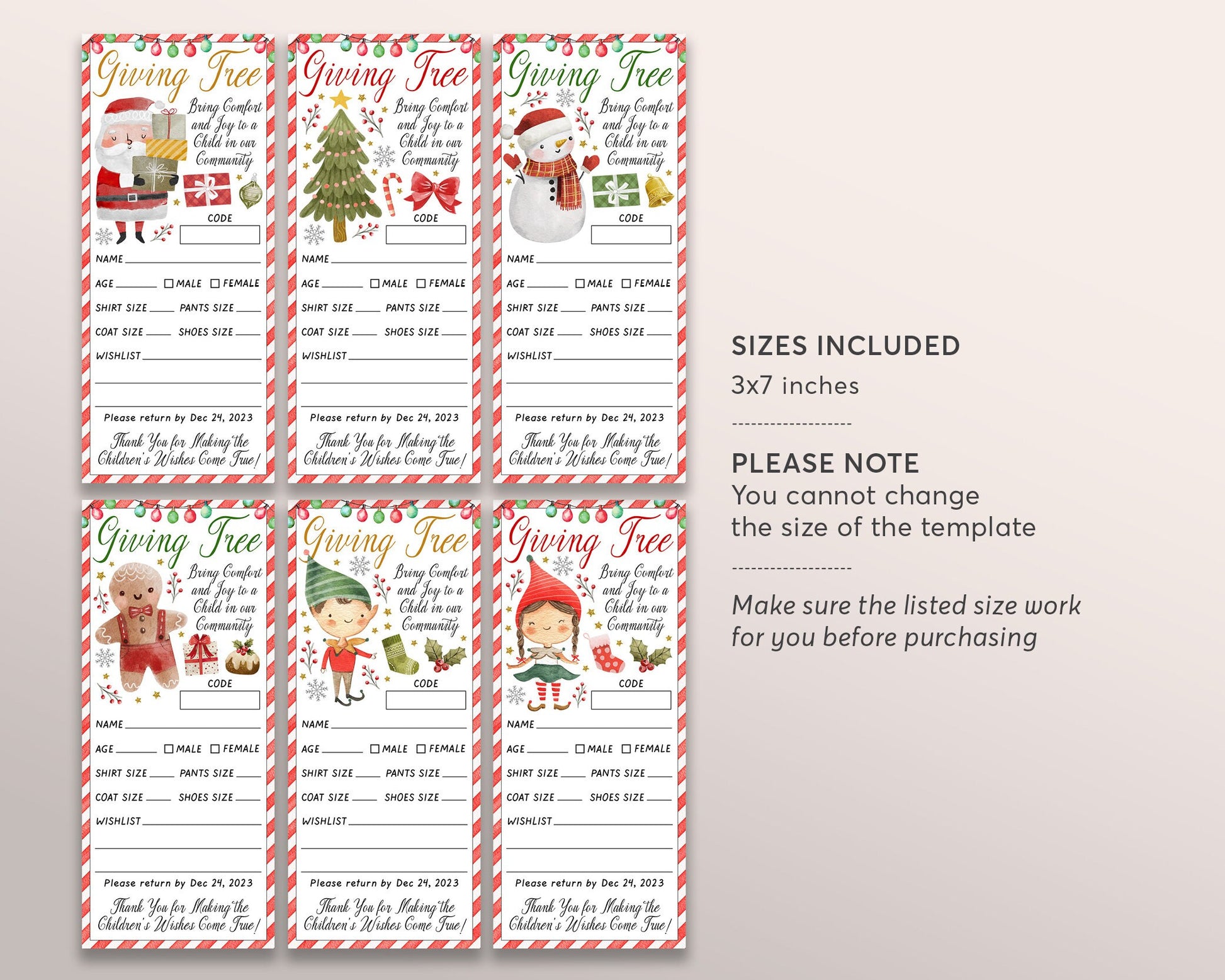 Christmas Giving Tree Gift Tag BUNDLE Editable Template, Donation Slip With Santa Elf Printable, Charity Community Event Church School DIY