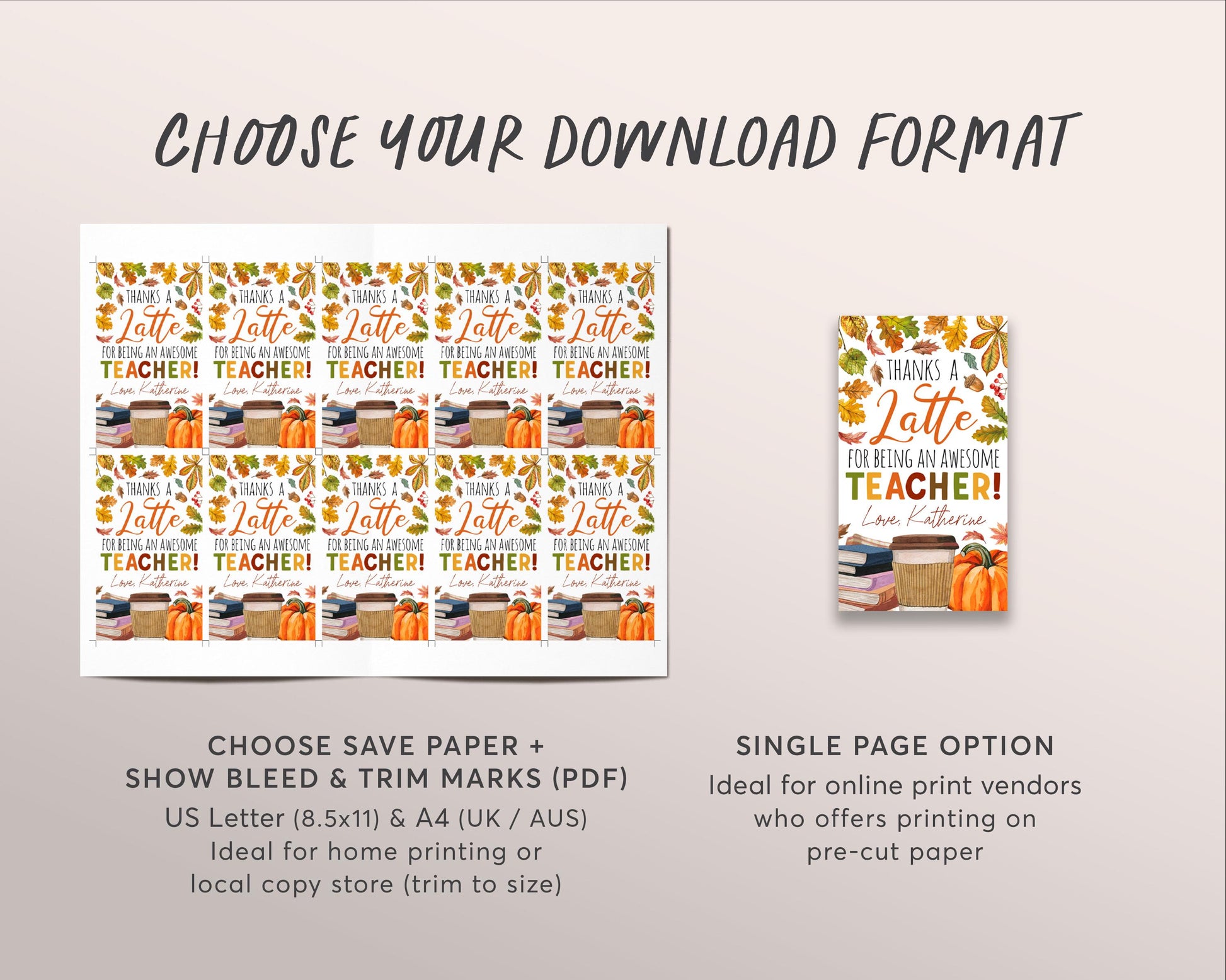 Fall Thanks a Latte Teacher Appreciation Gift Tag Editable Template, Coffee End of School Thank You Label, Autumn Thanksgiving Tag For Staff