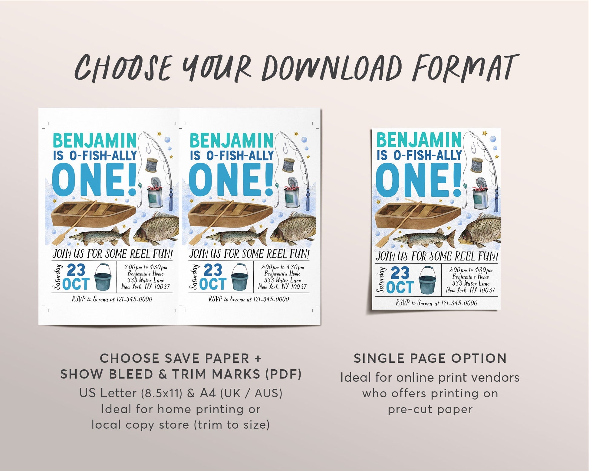Fishing 1st Birthday Invitation Editable Template, Boy O Fish Ally One First Birthday Party Invite, Ofishally Fly Fishing Evite, Reel Fun
