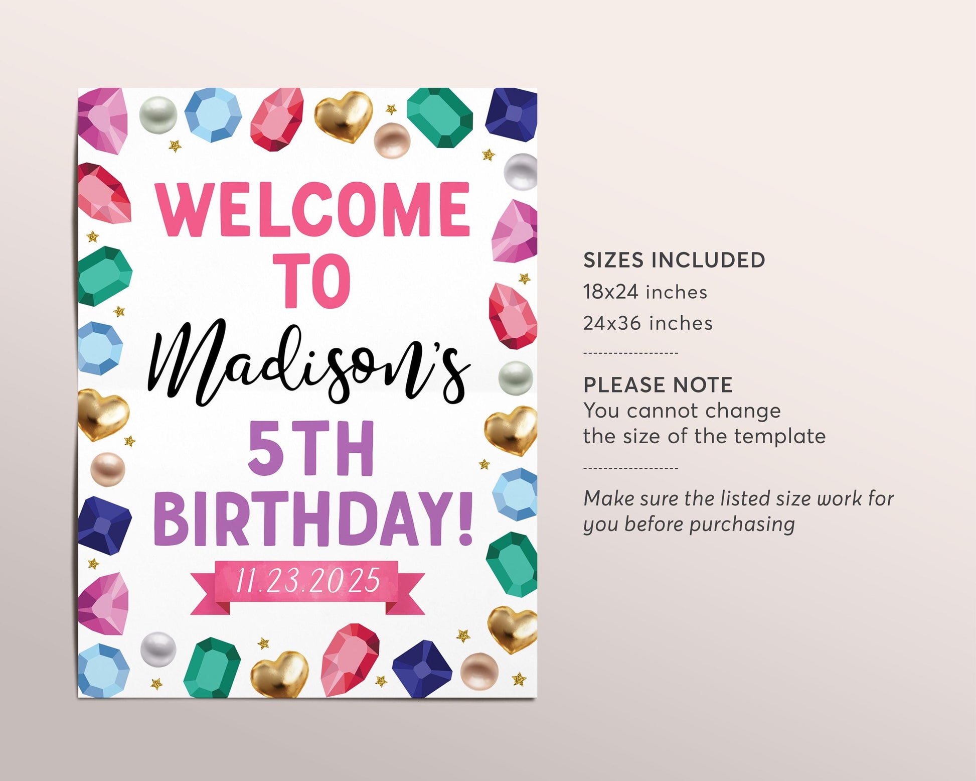 Gems Birthday Welcome Sign Editable Template, Gemstone She's A Gem Party Poster, Jewelry Making Our Little Gem Crystal Gemology Board Banner