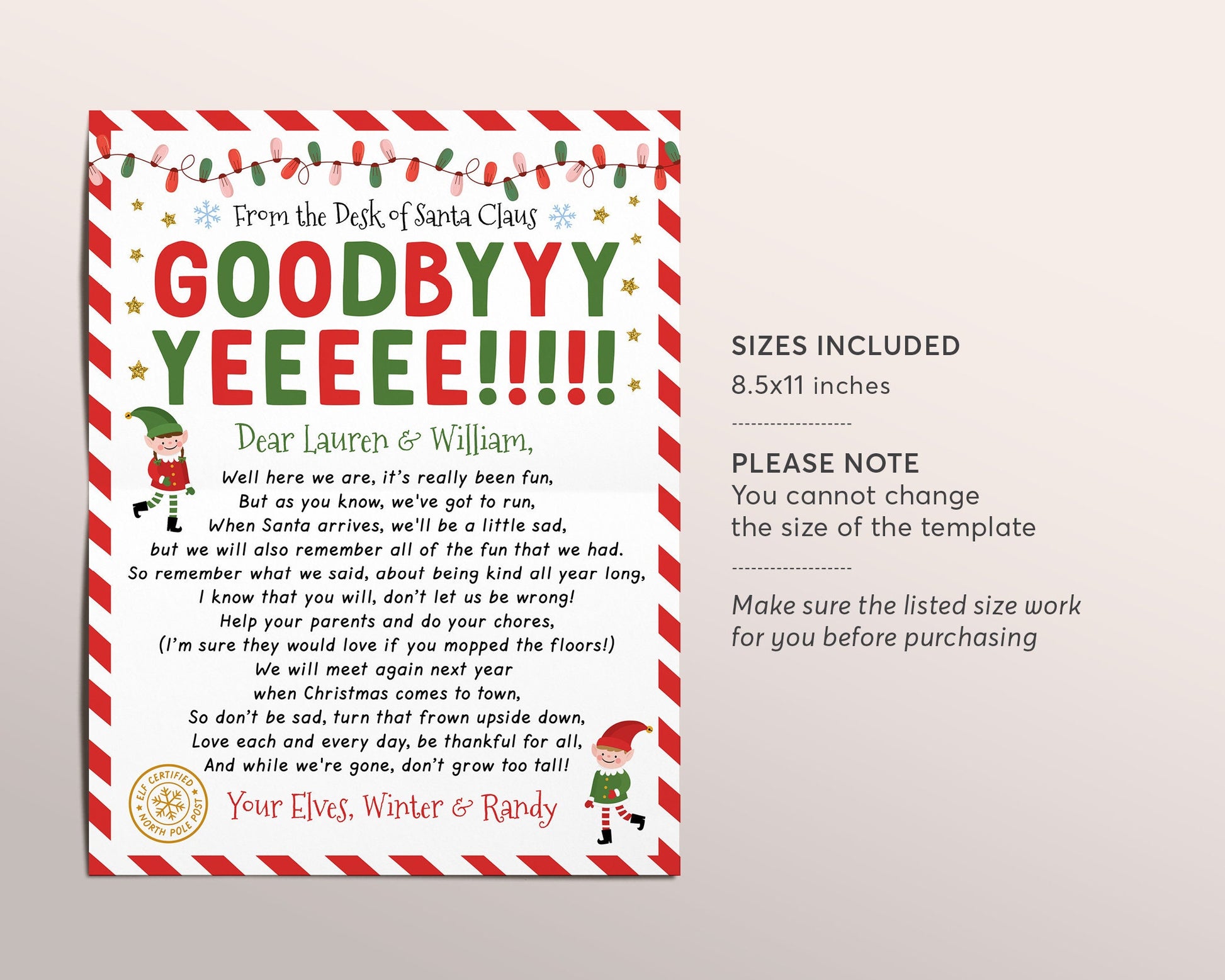 Goodbye Letter from Elves Editable Template, End of Christmas Elves Farewell Note, Christmas , Choose Your Elf Girl or Boy