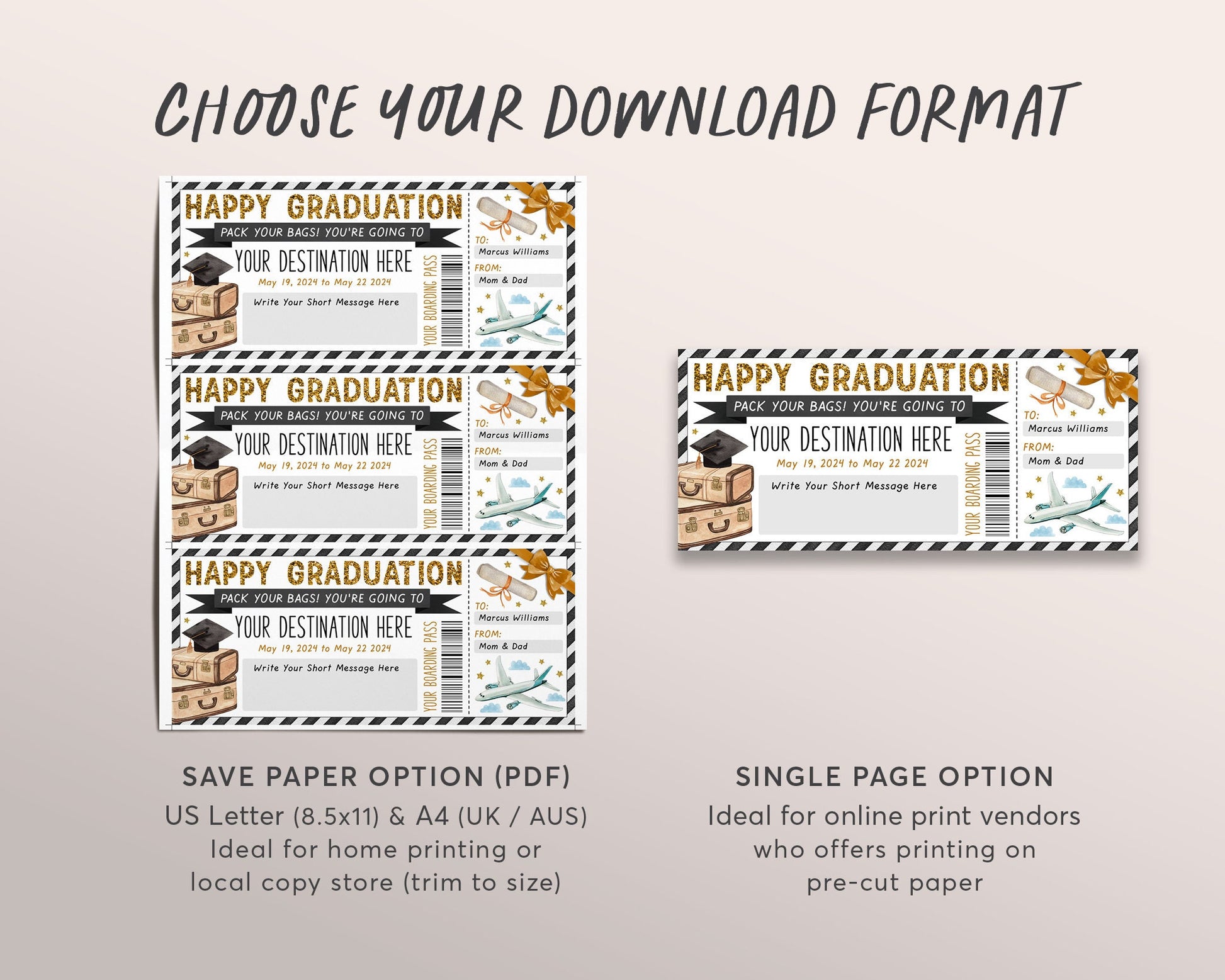 Graduation Boarding Pass Editable Template, Surprise Graduation Trip Plane Ticket Reveal, Vacation Travel Holiday Trip Flight Destination