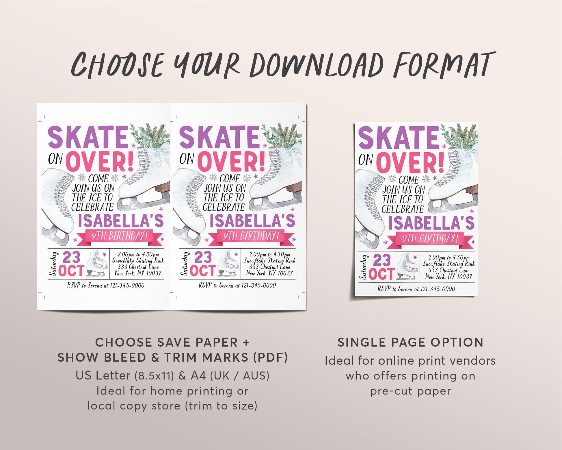 Ice Skating Birthday Invitation Editable Template, Girl Winter Ice Skating Party Invite, Kids Skate Rink Evite Printable, Outdoor Ice Rink