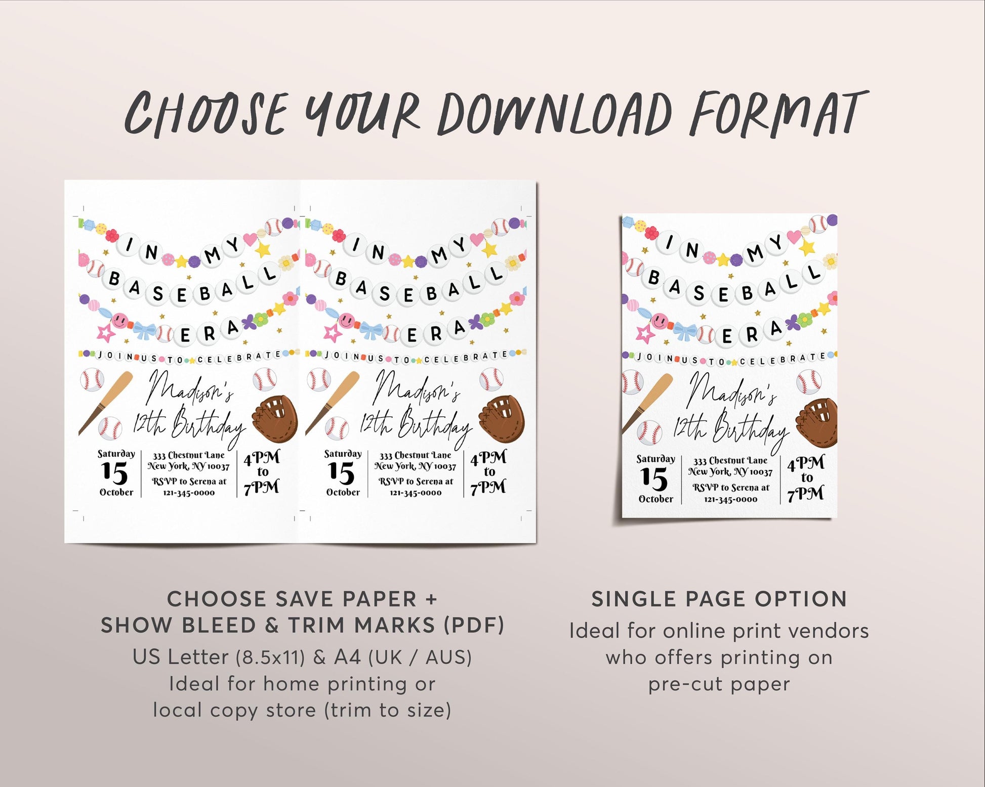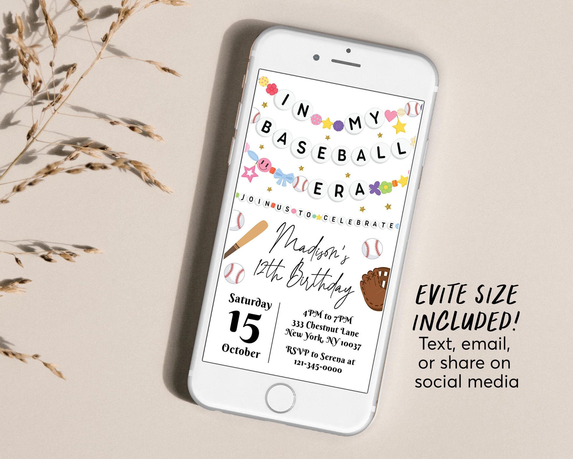 In My Baseball Era Birthday Invitation Editable Template, Baseball Friendship Bracelet Party Invite, Sports Game Day All Stars Eras Evite