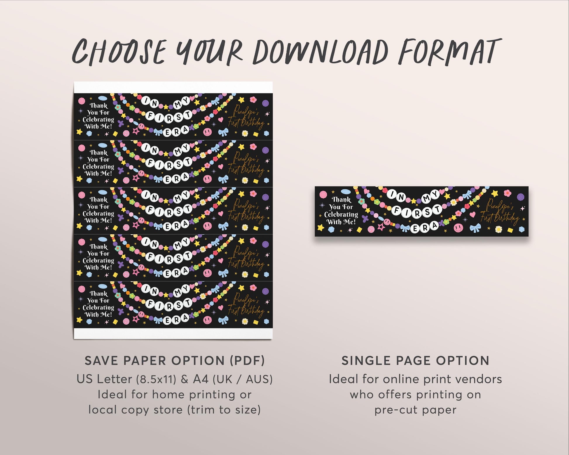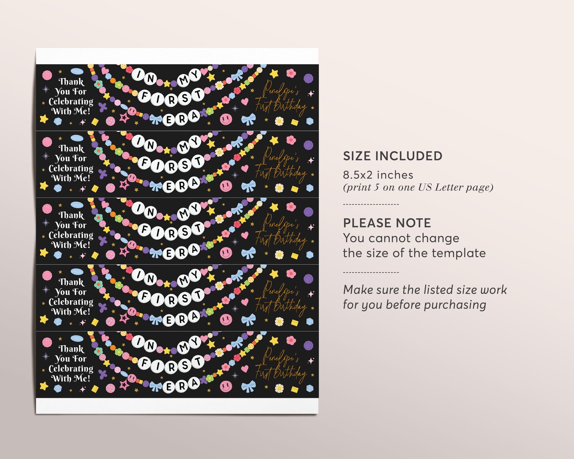 In My First Era Water Bottle Labels Editable Template, Eras Girl First Birthday Friendship Bracelet Party Bottle Wrapper Drink Tags Wrap