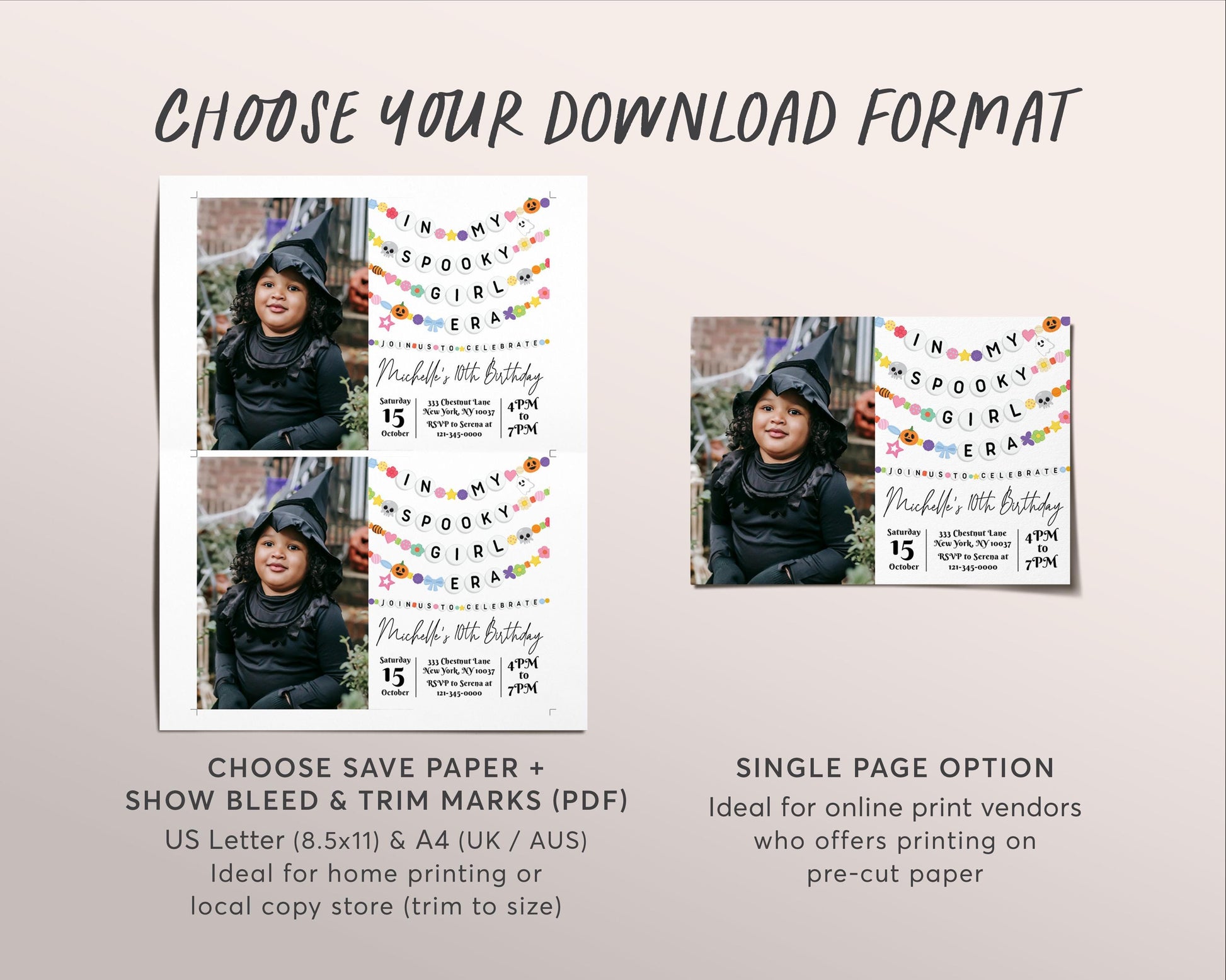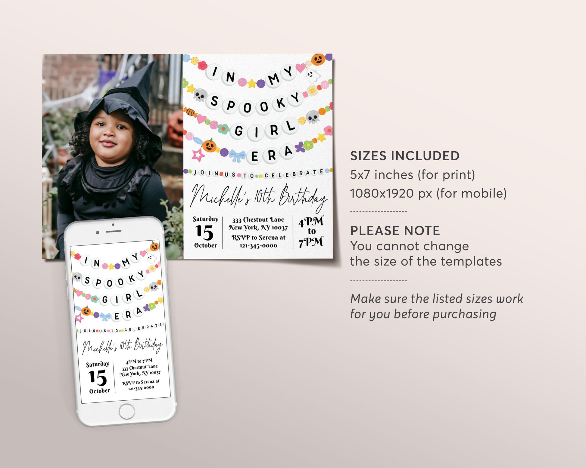 In My Spooky Girl Era Birthday Invitation With Photo Editable Template, Halloween Ghost Friendship Bracelet Party Invite, Spooky Era Evite