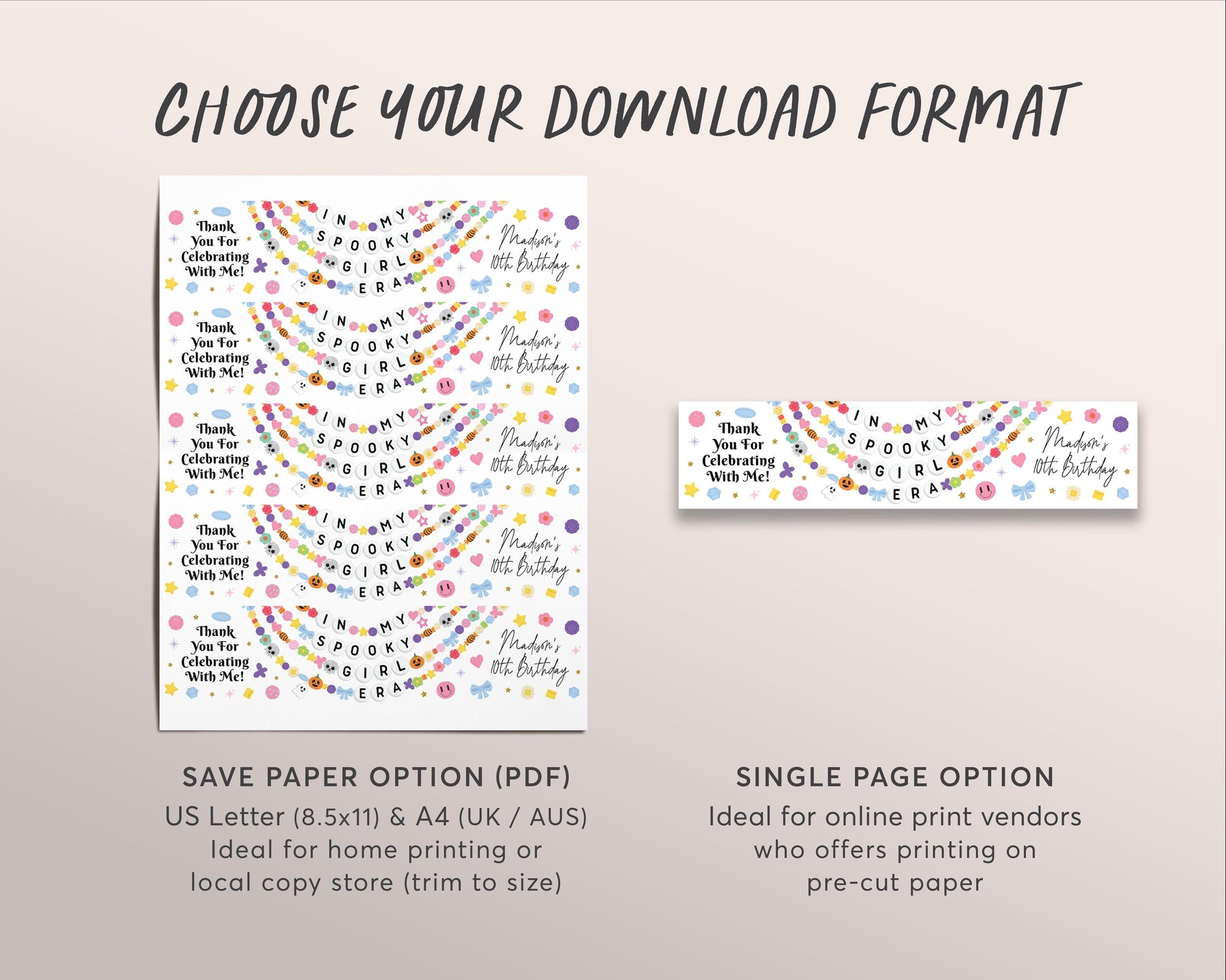 In My Spooky Girl Era Water Bottle Labels Editable Template, Eras Halloween Friendship Bracelet Party Bottle Wrapper Birthday Drink Tags