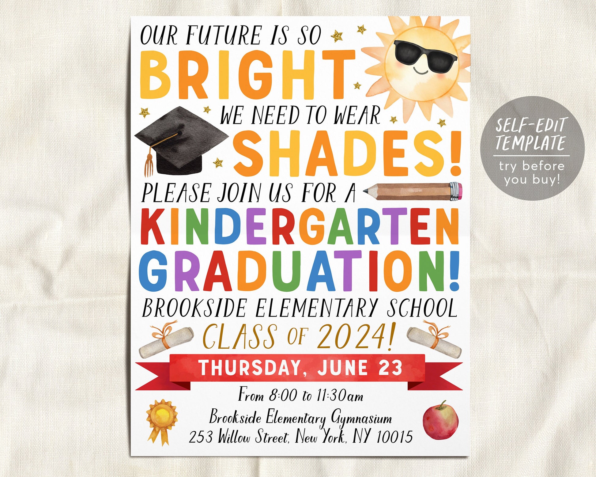 Kindergarten Graduation Ceremony BUNDLE Editable Template, Class Graduation Program, Future Is So Bright Announcement Invitation Invite