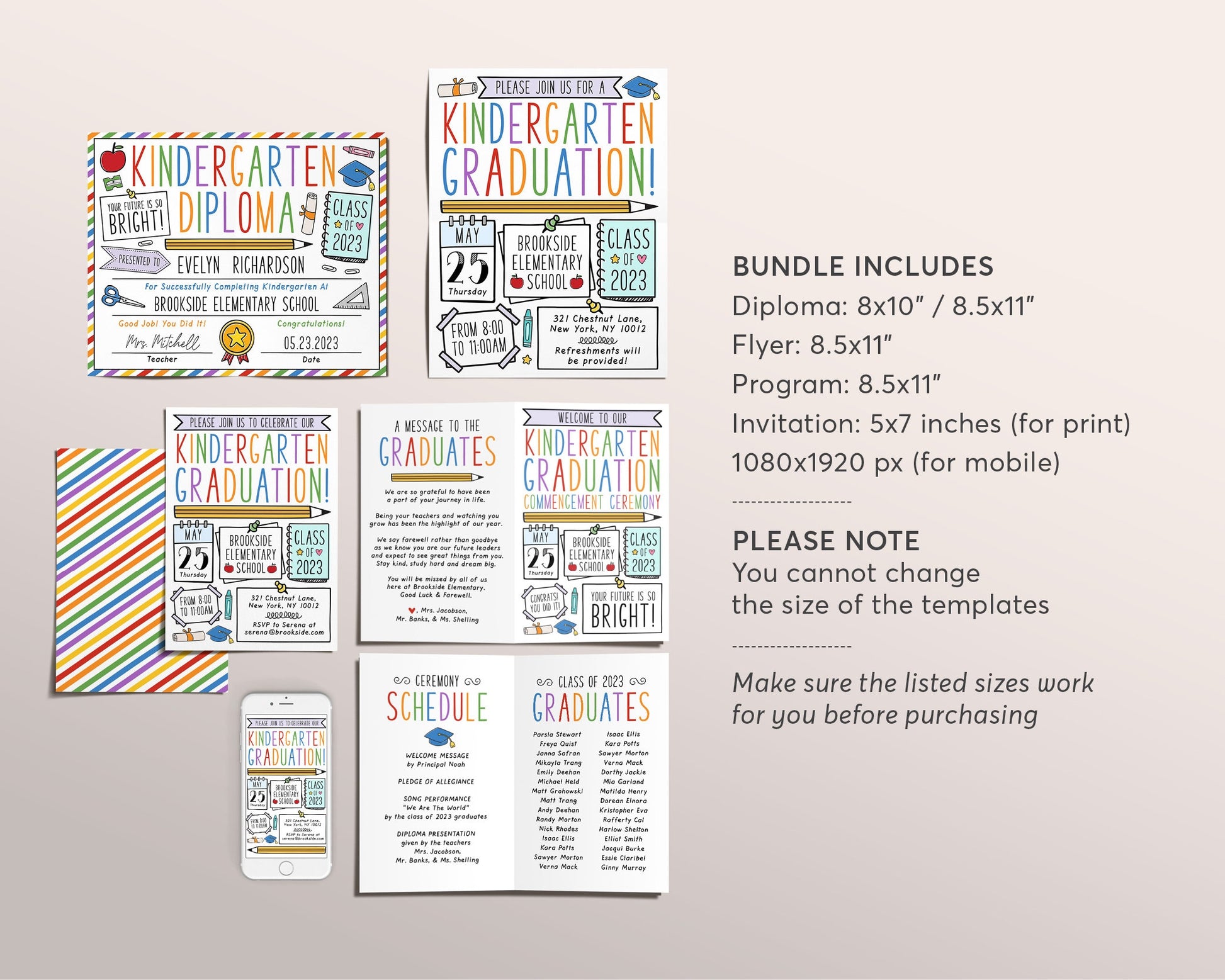 Kindergarten Graduation Ceremony BUNDLE Editable Template, Class Graduation Program, Preschool Announcement Invitation Invite, PreK Flyer