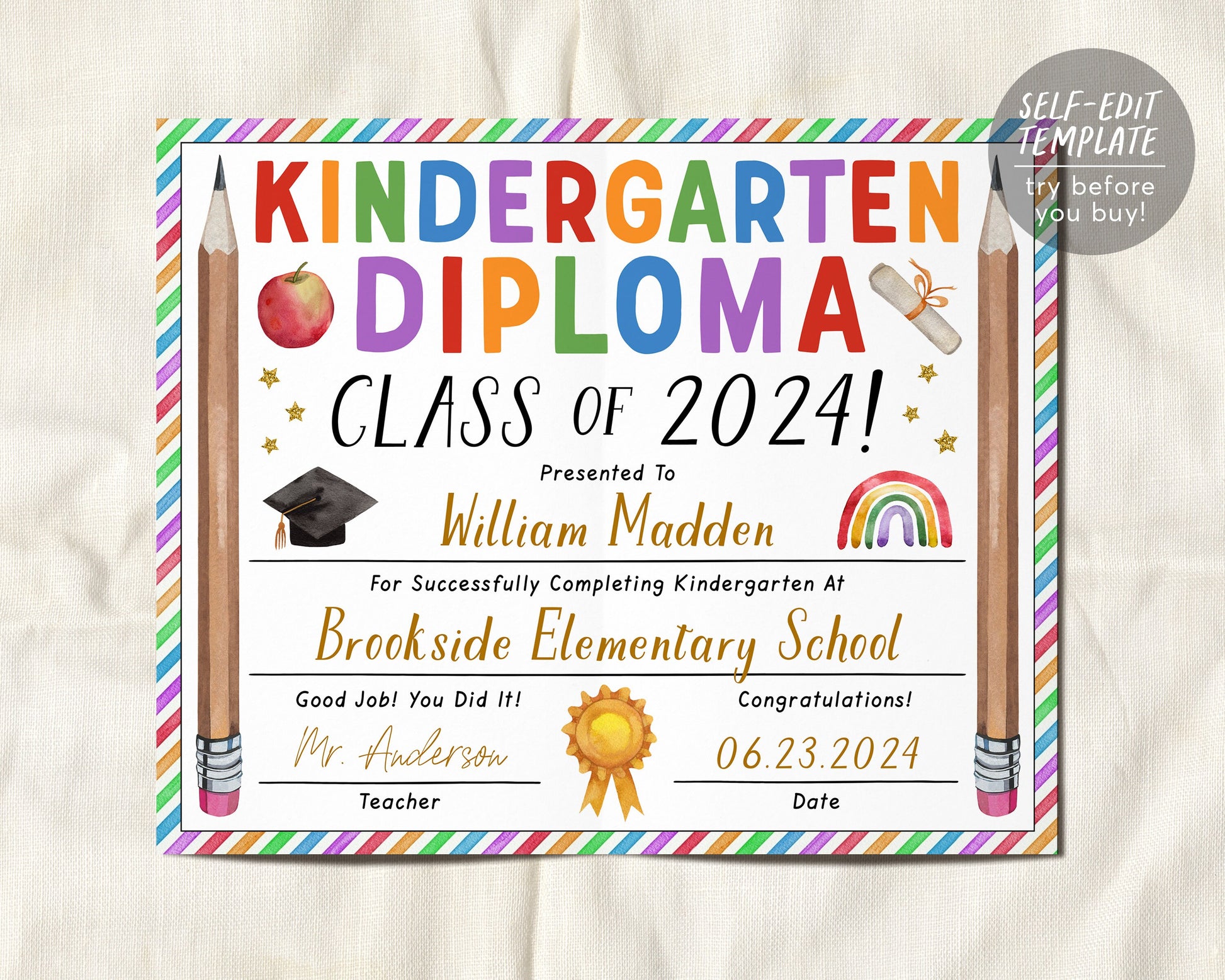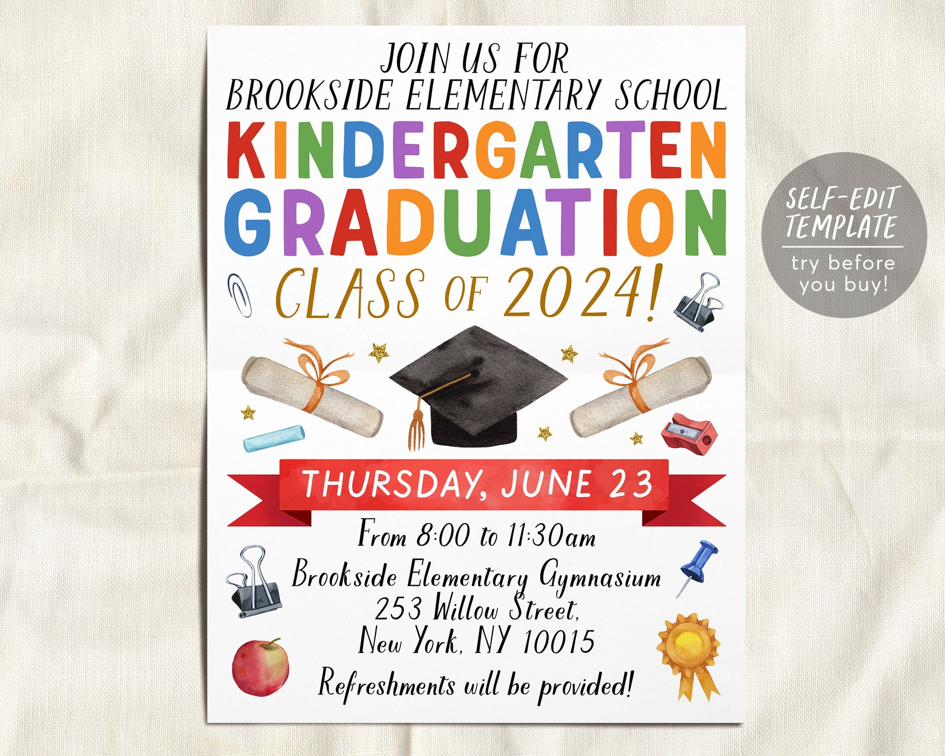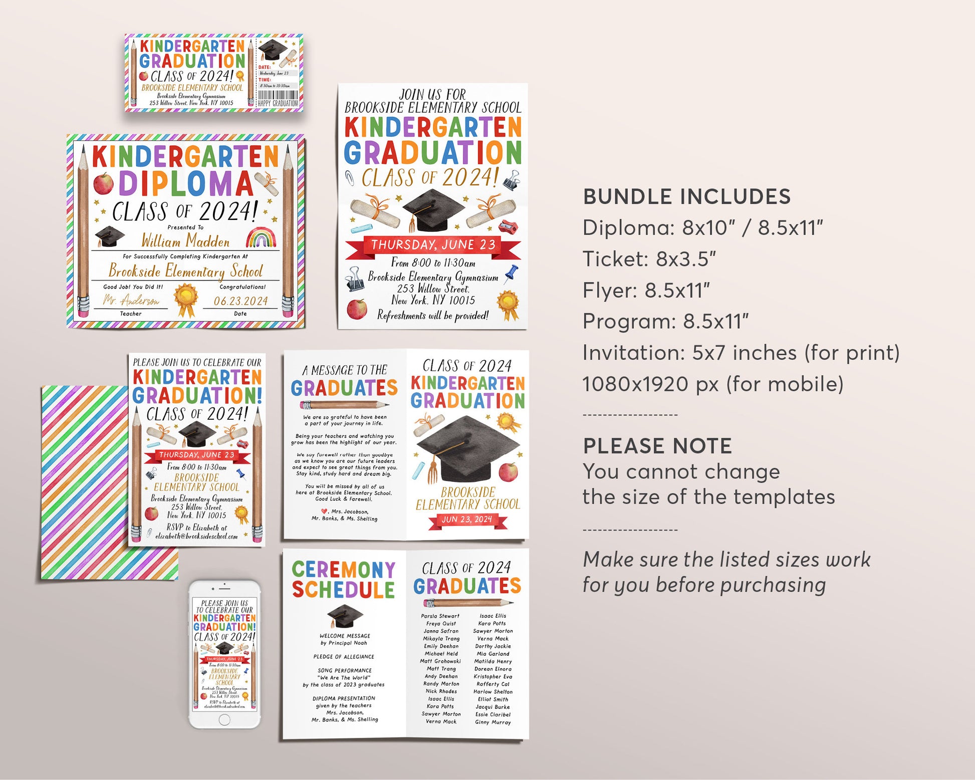 Kindergarten Graduation Ceremony BUNDLE Editable Template, Class Graduation Program, Preschool Announcement Invitation Invite, PreK Flyer