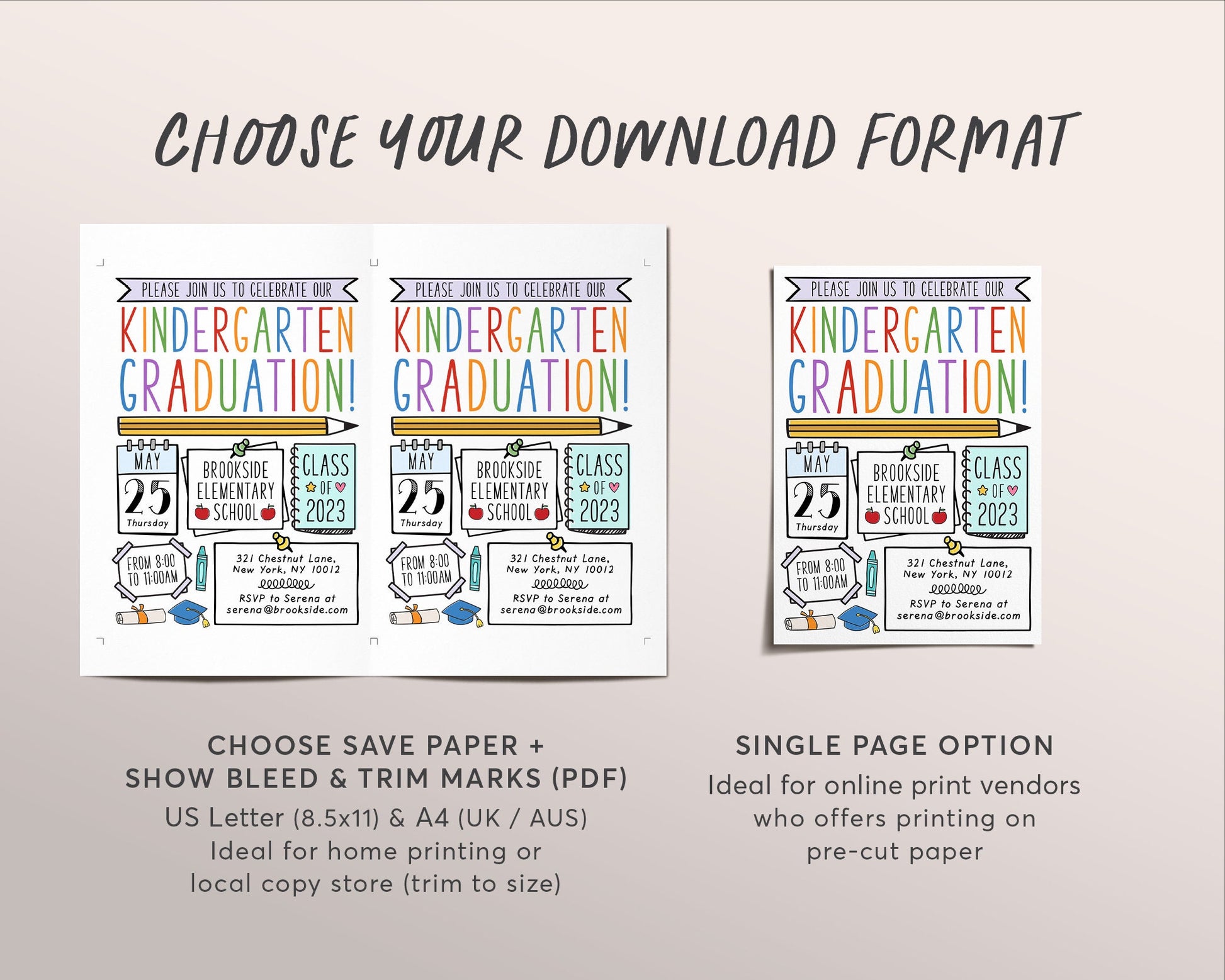 Kindergarten Graduation Invitation Editable Template, Preschool Class Graduation Announcement, Graduation Ceremony Invite Digital Evite