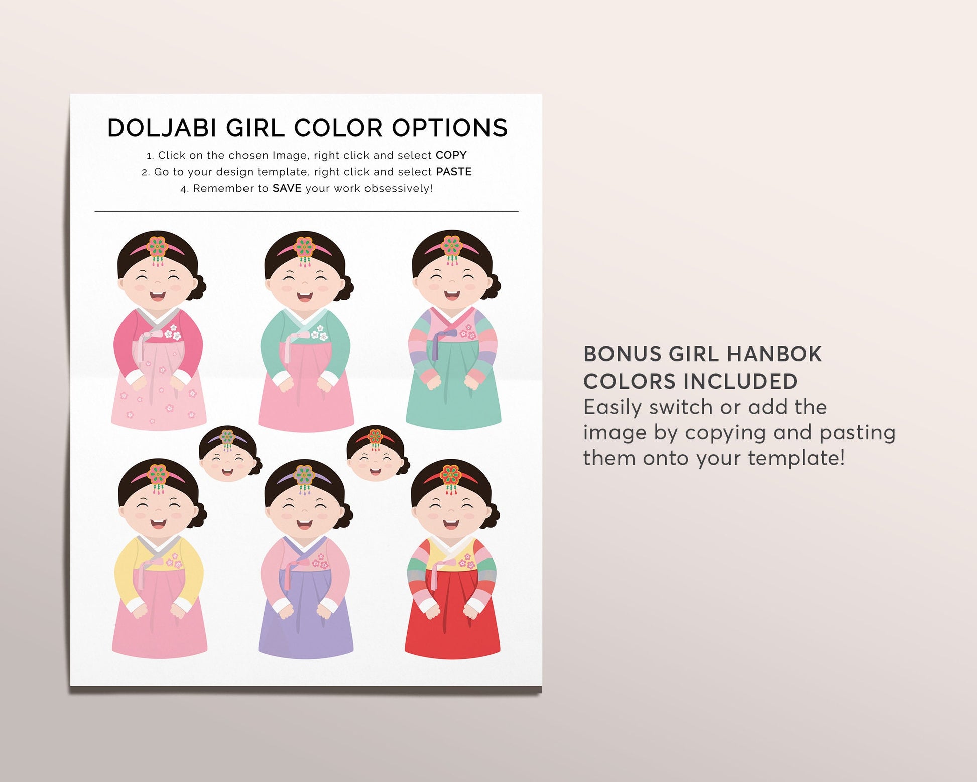 Korean Milestone First Birthday Sign GIRL Editable Template, Doljanchi Dol Dohl Doljabi Hanbok Stats Board 1st Birthday Party Poster