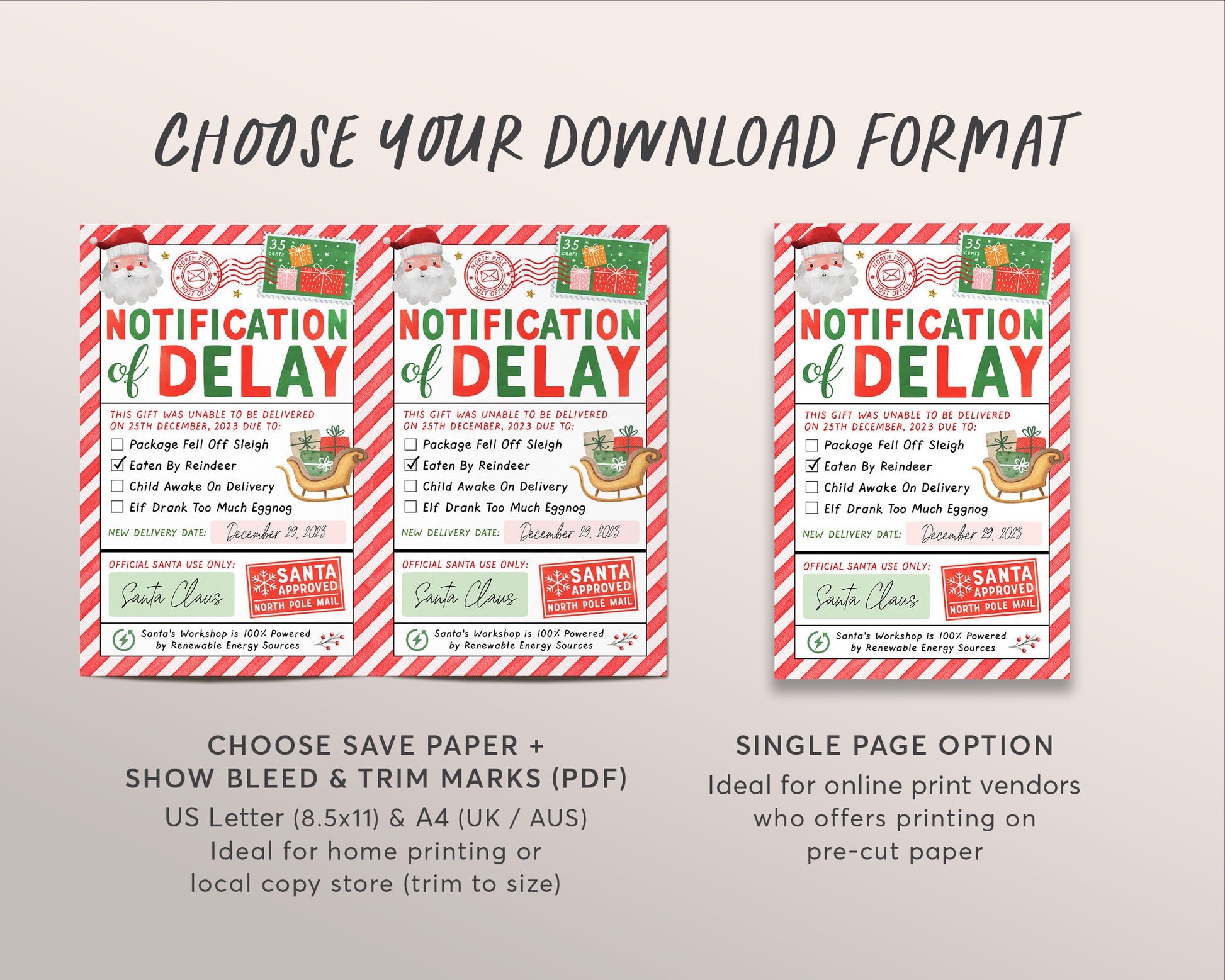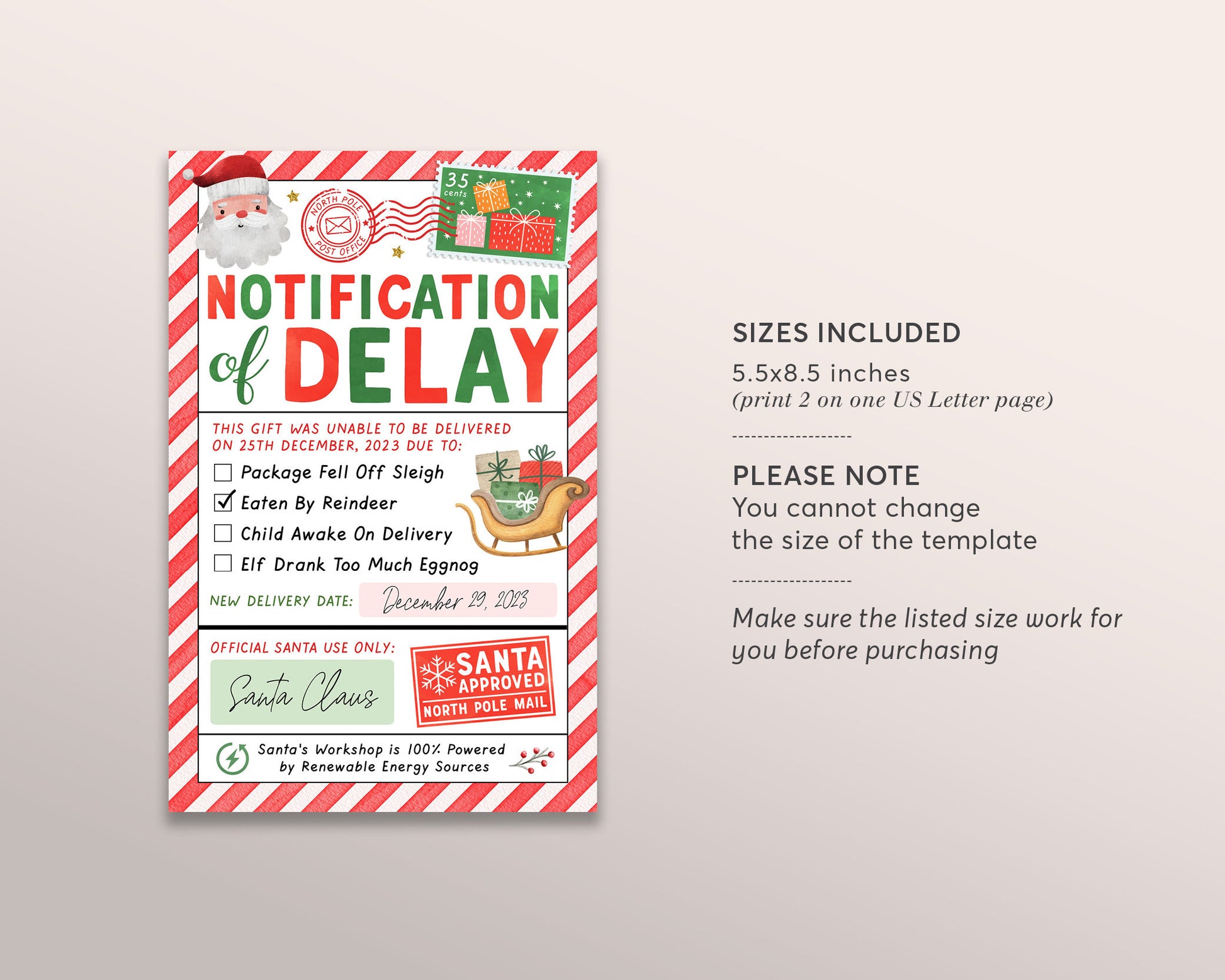 Late Christmas Gift Letter from Santa Editable Template, Delayed Christmas Package Notice Printable, Missing Christmas Present Official