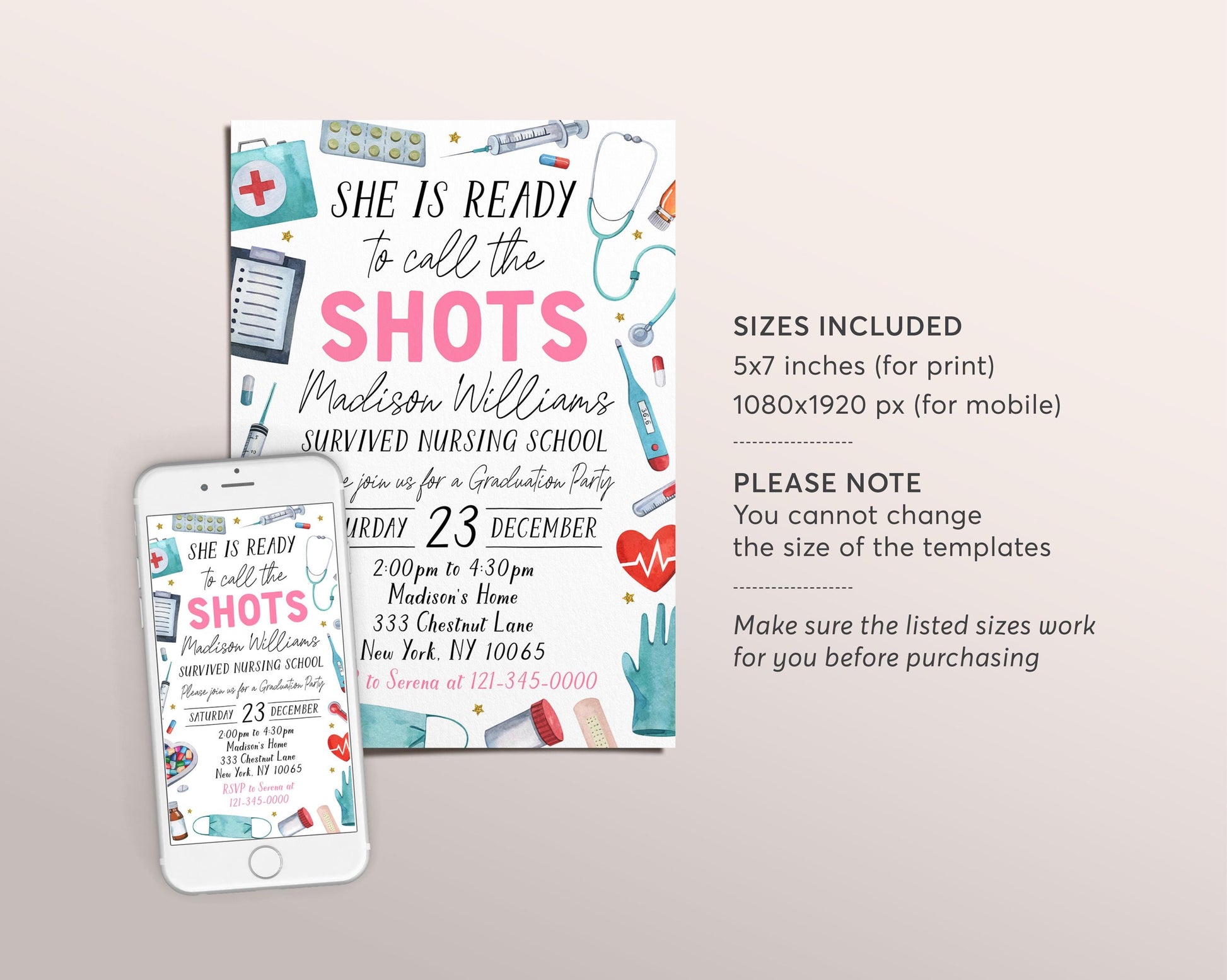Nurse Graduation Invitation Editable Template, Nurse Graduation Announcement Party Invite, Nursing School Grad Ready to Call the Shots Evite
