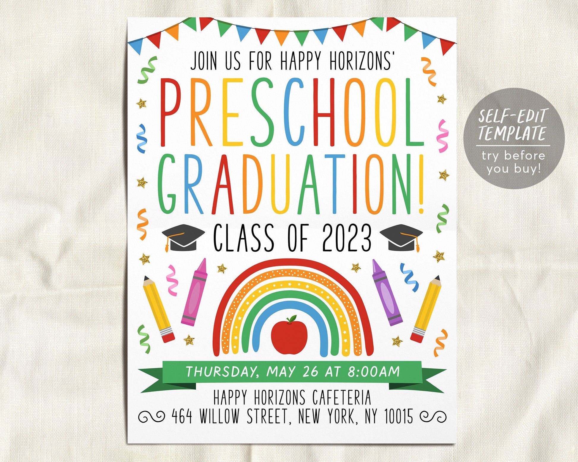 Preschool Graduation Ceremony BUNDLE Editable Template, Pre-K Kindergarten Class Graduation Certificate, Graduation Ceremony Invite Evite
