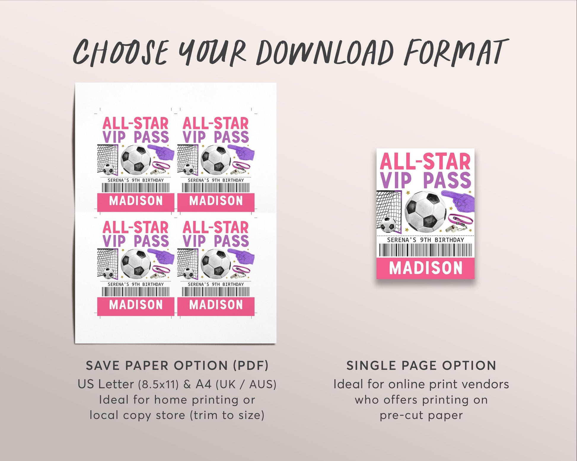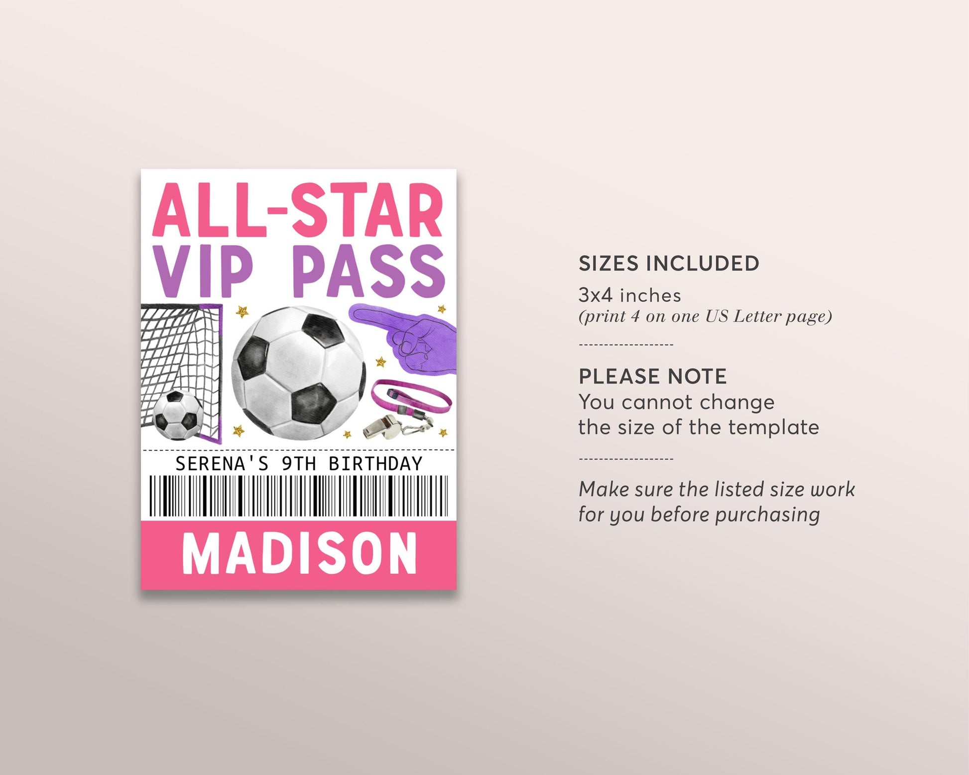 Soccer Birthday All Star VIP Pass Editable Template, Football Sports Party All Access Pass, Guests Name Tag Insert ID Badge Team Lanyard
