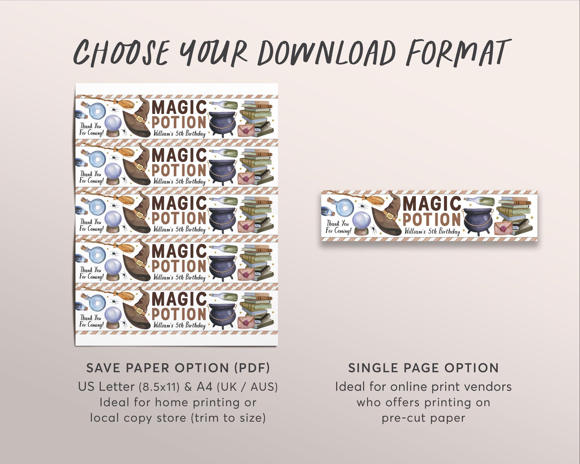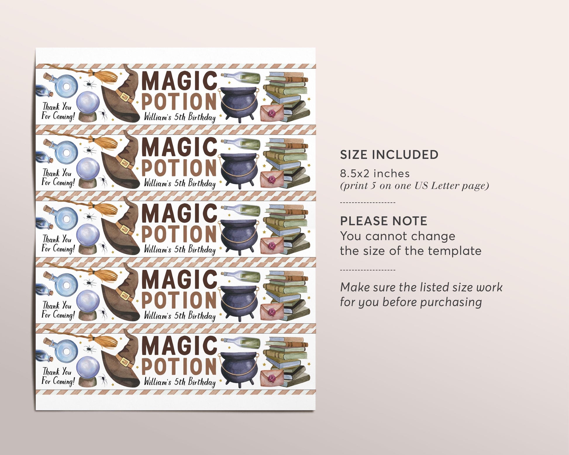 Wizard Water Bottle Labels Editable Template, Magic Potion Birthday Party Drink Wrapper Tag, Magical Cauldron Magic School Bottle Drink Wrap